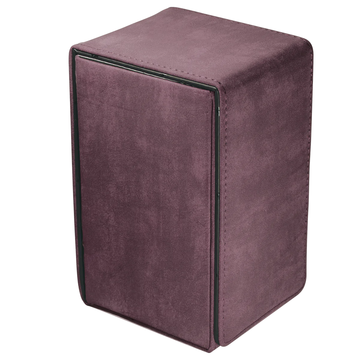Premium Alcove Tower Flip Deck Box storage cases made with a suede-like material. The Alcove Tower can hold up to 100 double sleeved cards with its lid secured by strong magnetic closures utilizing multiple magnets for extra protection. The lid can be undone on both sides of the box to reveal dual thumb notches for easy access to your deck of cards. The Alcove Tower is a great storage device for organizing and protecting your collection.